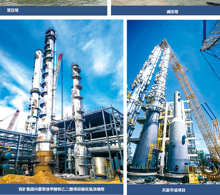 公司參與設(shè)計(jì)制造的核心關(guān)鍵設(shè):干煤粉加壓氣化爐、低溫甲醇洗裝置中的4臺(tái)解吸塔和4臺(tái)閃蒸塔,油品加工裝置中的8臺(tái)渣蠟減壓罐和8臺(tái)渣蠟儲(chǔ)存罐等這些大型超限設(shè)備的首次國(guó)產(chǎn)化制造任務(wù)、替代進(jìn)口,填補(bǔ)國(guó)內(nèi)空白;突破一系列大型超限壓力容器核心關(guān)鍵工藝技術(shù)。