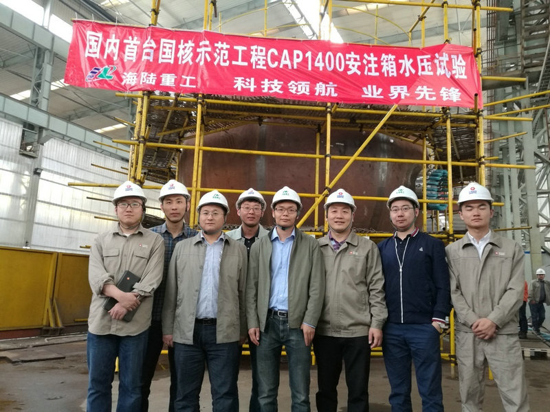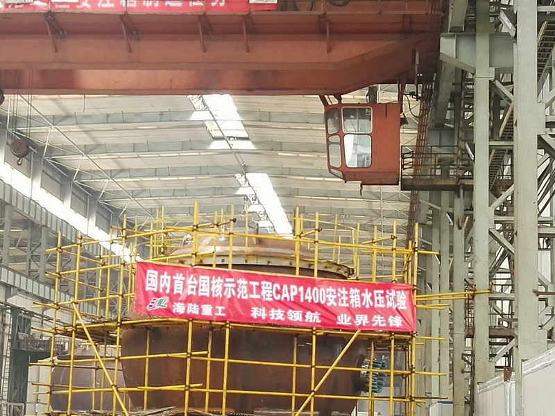 海陸重工承制的國內首臺國核示范工程CAP1400安注箱水壓試驗順利完成!